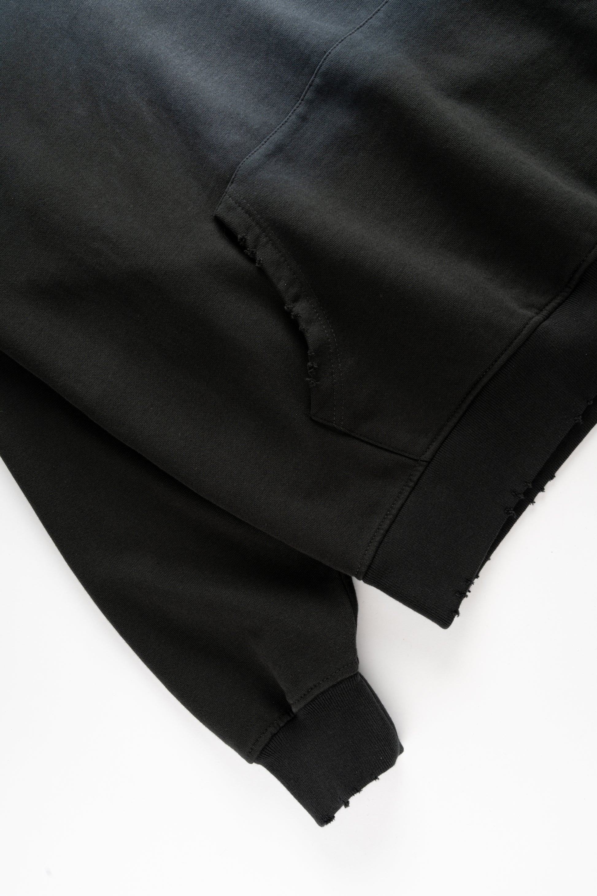- Distressed Hood/Sleeves/Bottom